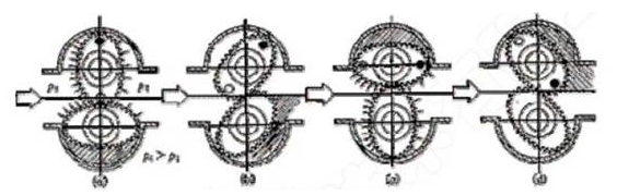 橢圓齒輪流量計工作原理圖: